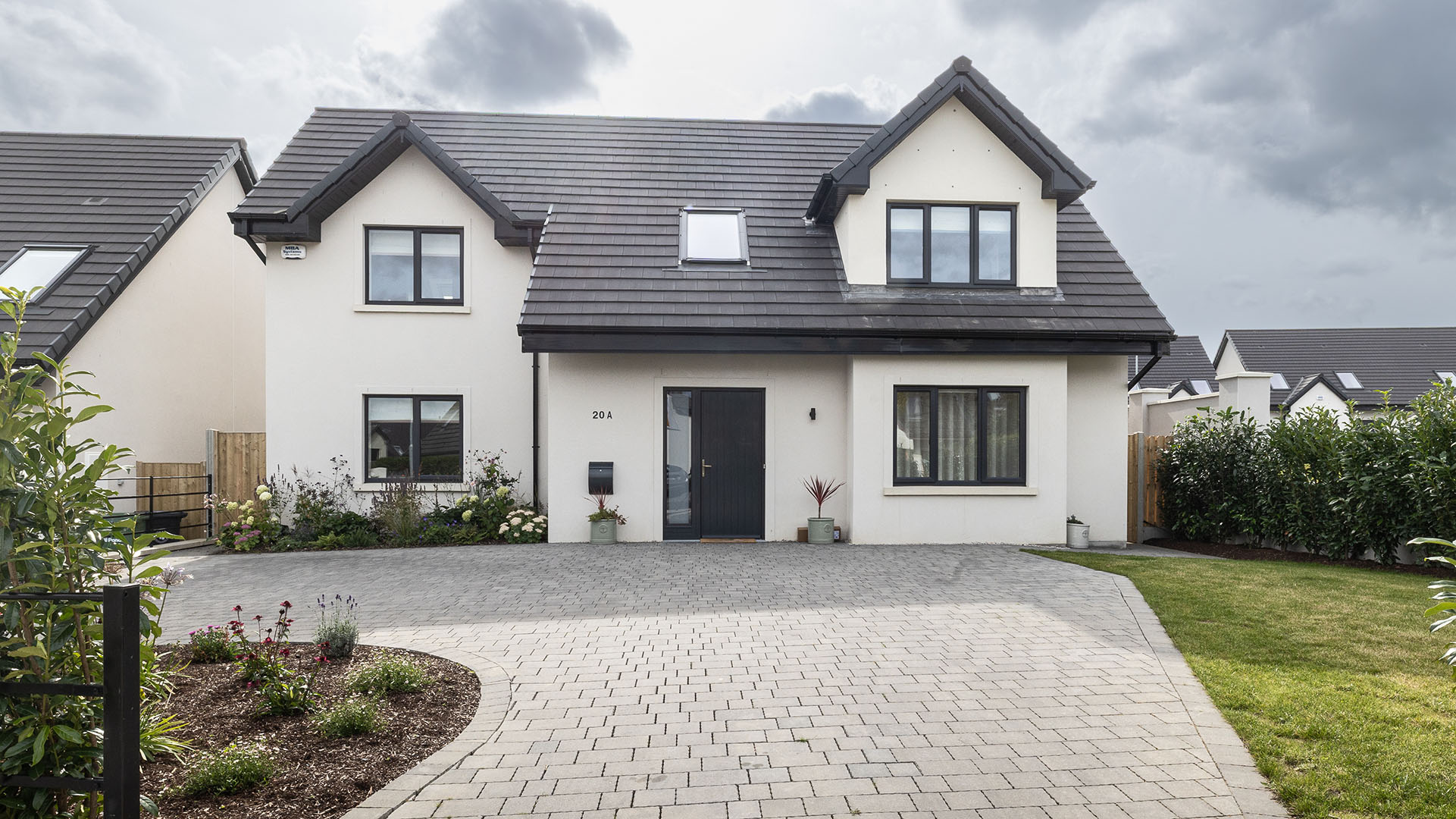 The project comprises 20 detached and semi-detached houses arranged around a central shared green, which forms the focal point of the development and provides passive recreational space for residents. The mix includes two-, three- and four-bedroom houses, allowing for a range of household types and stages of family life. House sizes range from approximately 87 sq m to 168 sq m.