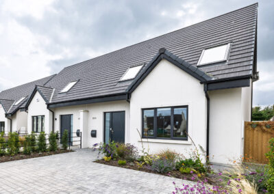 The layout has been designed to integrate with the existing village grain, with careful consideration given to building scale, spacing and orientation. Private rear gardens are provided to all houses, accessed directly from the main living areas. Driveways are finished in cobble-lock paving and are pre-wired for the installation of electric vehicle charging points.